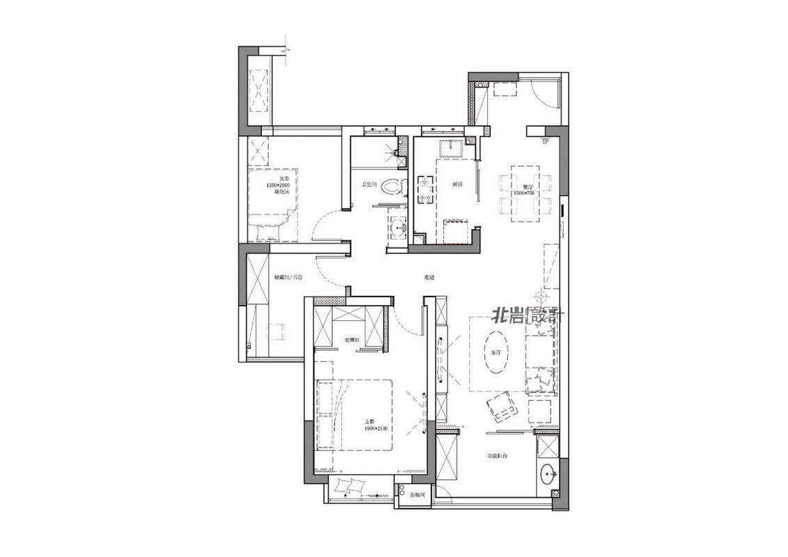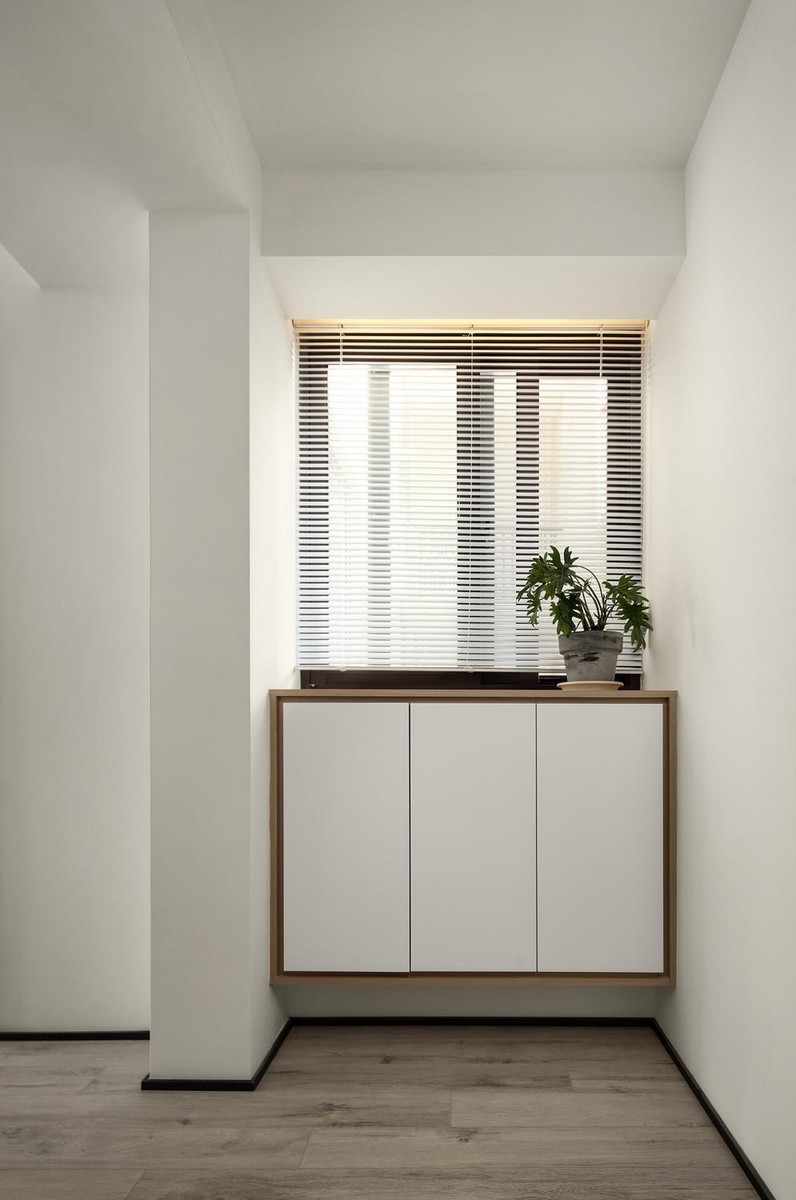 设计构想:原建筑面积76平,改造后为90平。拿掉了原入户门扩建成入户玄关,一进门视觉上更加开阔,坐下换鞋放包也方便;拆除了两个原始空调机位,阳台原始机位一分为二一部分纳入阳台一部分纳入主卧作为杂物间使用,主卧旁边的小房间则拆除墙体改建成书房兼储物空间,这样改建后储藏空间就得到了很大的满足。