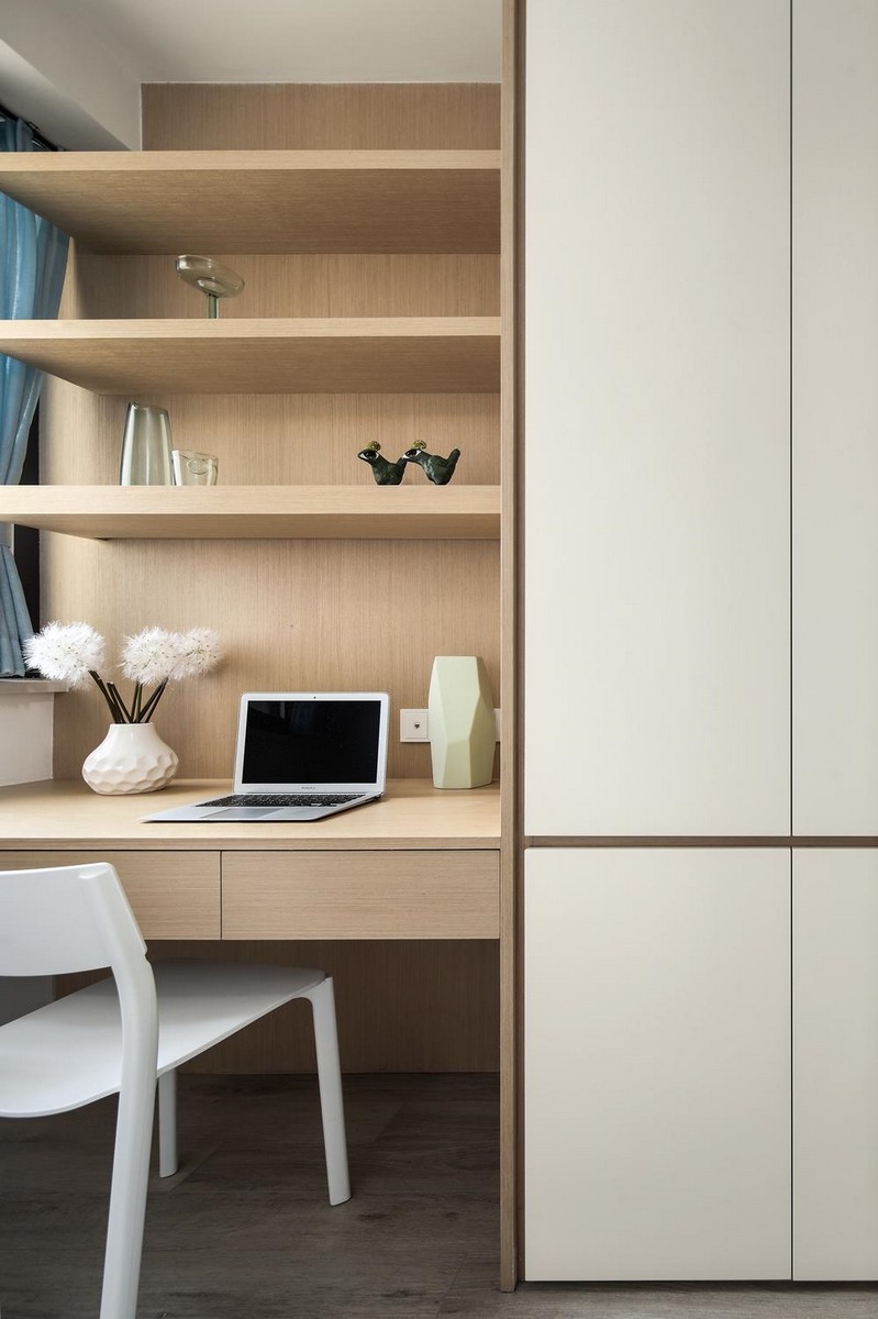 #书房 #书房的面积并不大,增加了收纳空间后不再拥挤看起来就宽敞舒心很多。柜体选择了白色和木色营造宁静,在这里工作正合适。