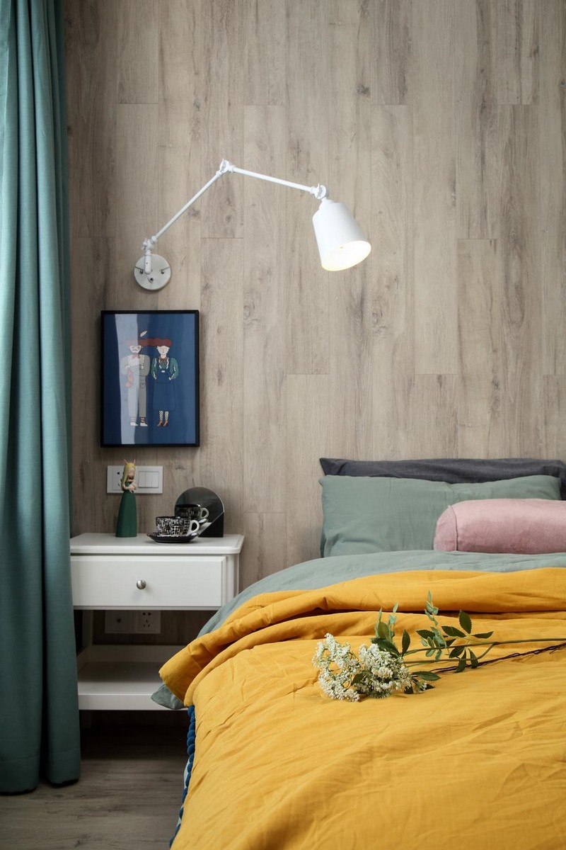 #卧室 #卧室,清新绿色入眼给人的感觉如浴清风一般,配合木地板直接上墙的设计打造出森林感的本真自然,在这里入眠可以说是很简单了。